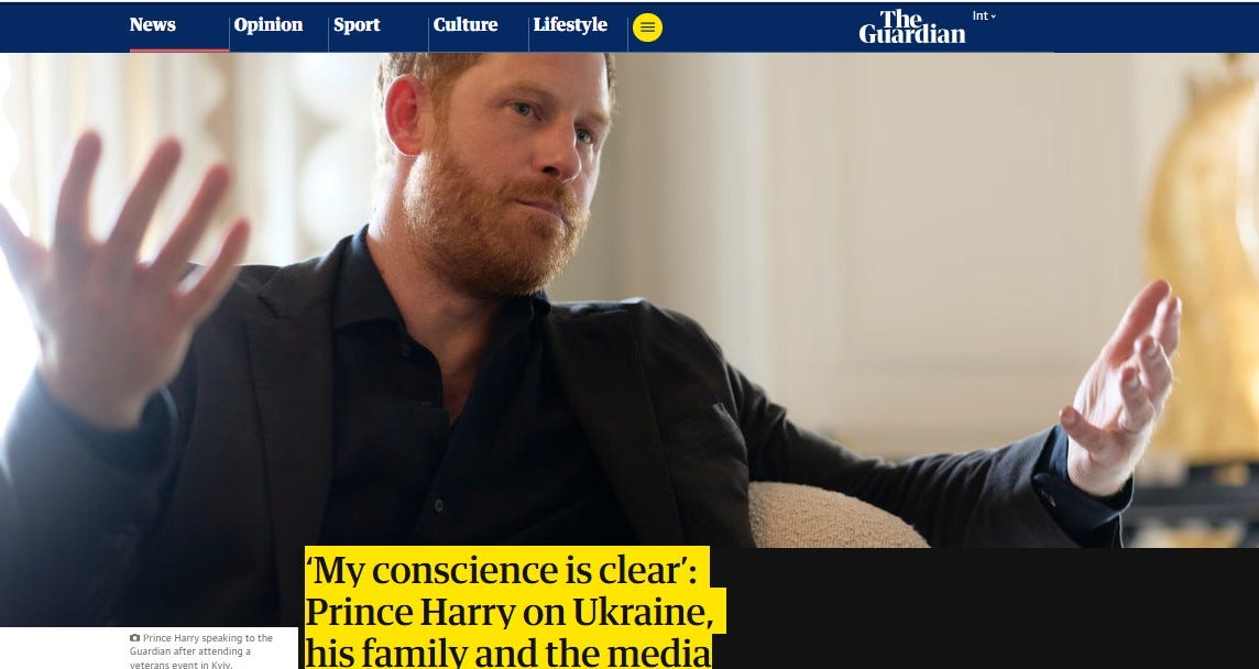 Prince Harry and the Guardian’s journalist and photographer are together during the long train rides into and out of Ukraine as well as their time in Kyiv. The photos and bulk of the article may be of his trip to Ukraine, which was designed to promote the work of the Invictus Games Foundation and its focus on the recovery and rehabilitation of war veterans, yet the Guardian headlined their article by using Harry’s answer as to whether he regrets “putting his side of the story in the very public way that he has?” “My conscience is clear,” the prince responded. It’s both attention grabbing and makes it clear that this wasn’t going to be a soft read.